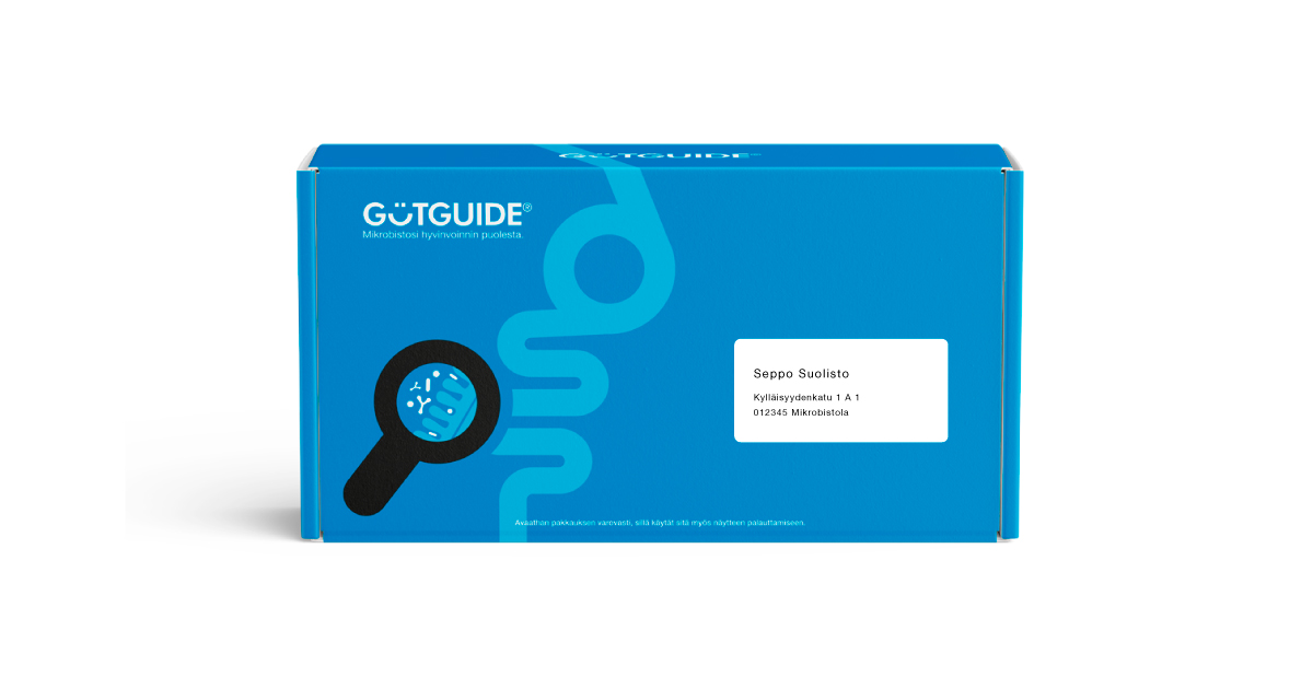 Kuva 4. Analyysin tilaamisen jälkeen näytteenottopakkaus toimitetaan muutamassa päivässä. Näyte tulee ottaa ma-su ja postittaa mahdollisimman pian takaisin laboratorioon näytteen säilyvyyden takaamiseksi. Analyysin tulokset ja asiantuntijoiden suositukset ovat saatavilla OMA GutGuide tilillä noin kahden viikon kuluttua näytteen saapumisesta laboratorioon. Katso ohjeet näytteenottoon tästä.
